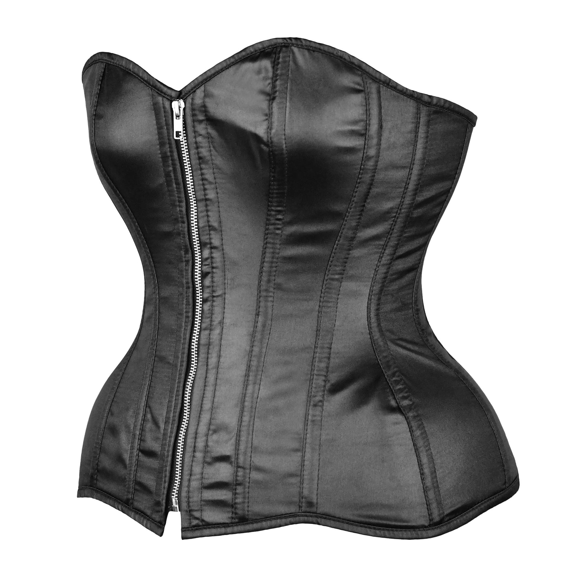 - Corset Features: Smooth Satin Finish, Silver Front Zipper Closure