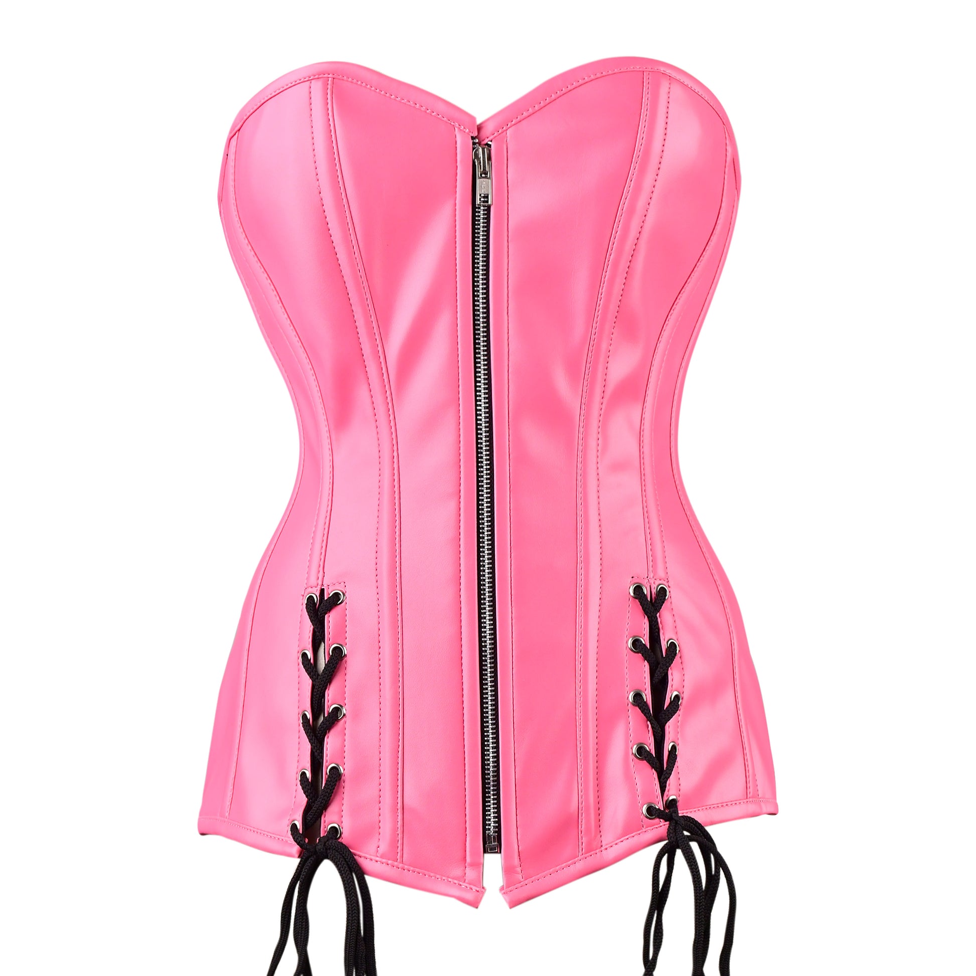 Turn sweet into sinful with the Candy Vixen Corset — a bold fusion of flirtation and attitude. Its hot pink faux leather finish radiates confidence, while the strong front zipper and side lace-up details in black add gothic bite to its sugary aesthetic.