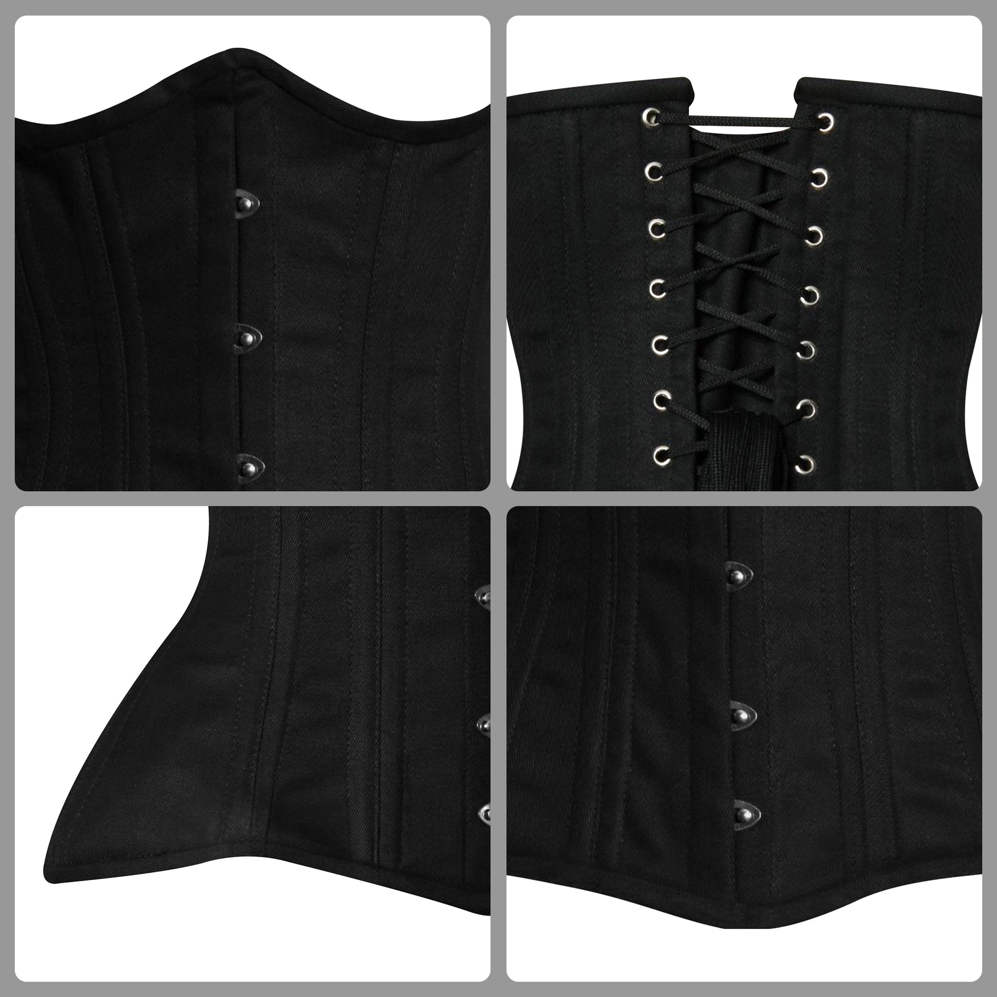 Handmade Black Cotton Underbust corset/Steel Boned Waist Training Corset