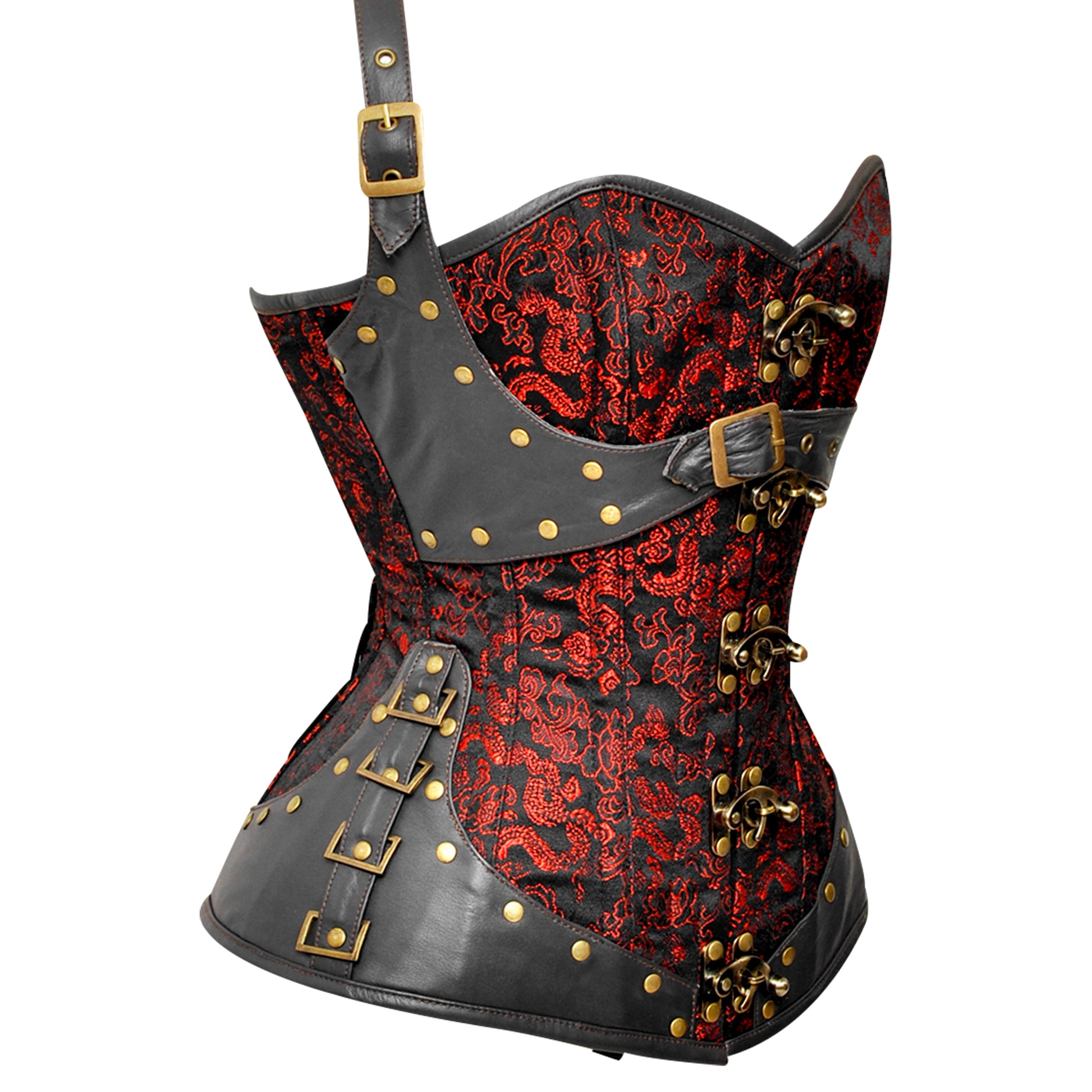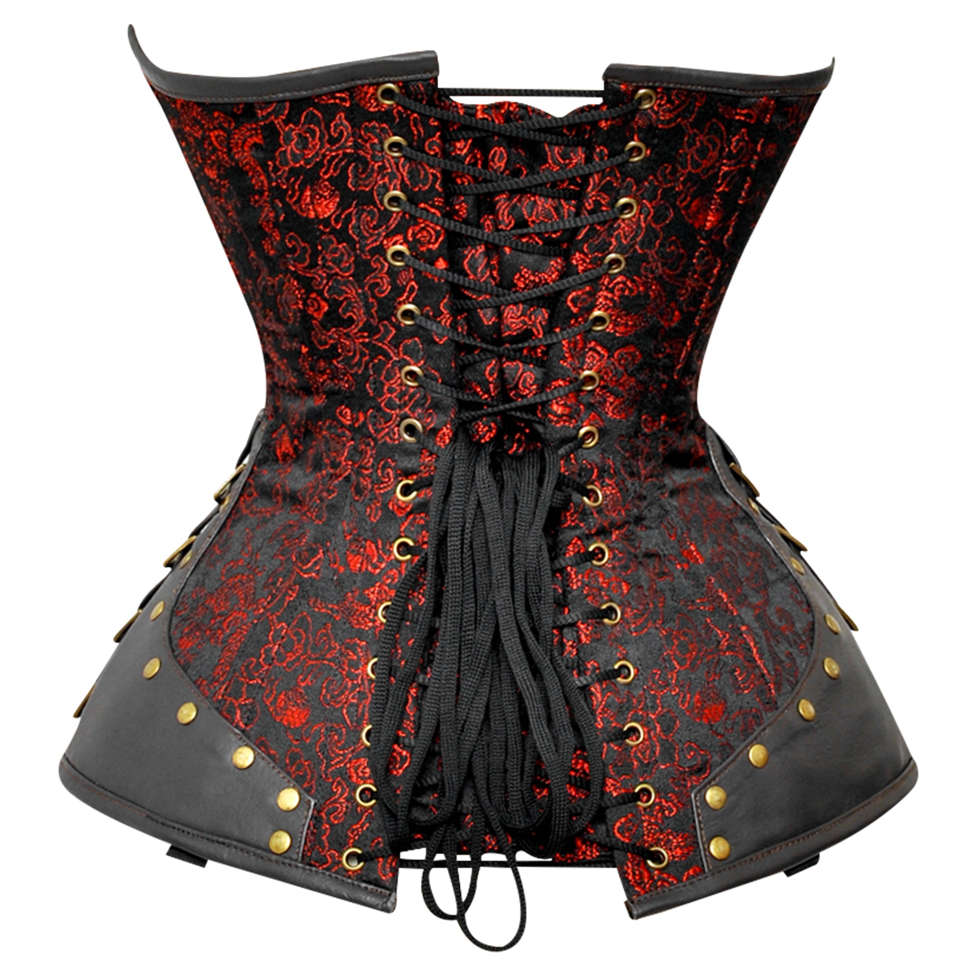 - Corset Features: Cord Lacing, Hip Gores, Rust Hardware