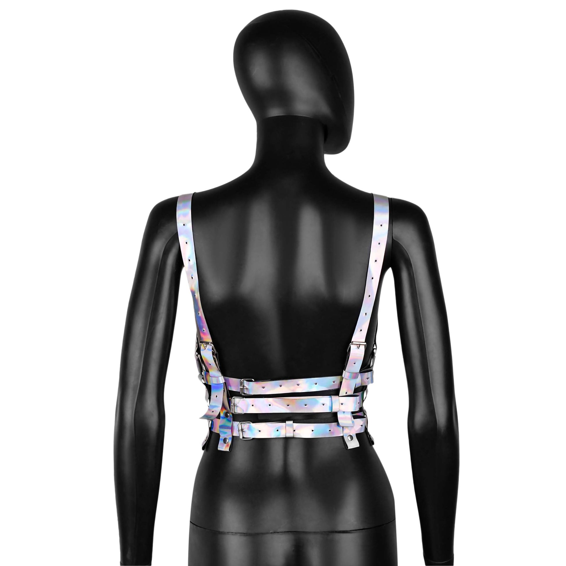 The Holographic Leather Strappy Harness is a futuristic and versatile accessory designed to elevate any look. Whether worn at festivals, performances, or as part of a daring outfit, this harness is the perfect investment for showcasing bold style with a sleek edge.
