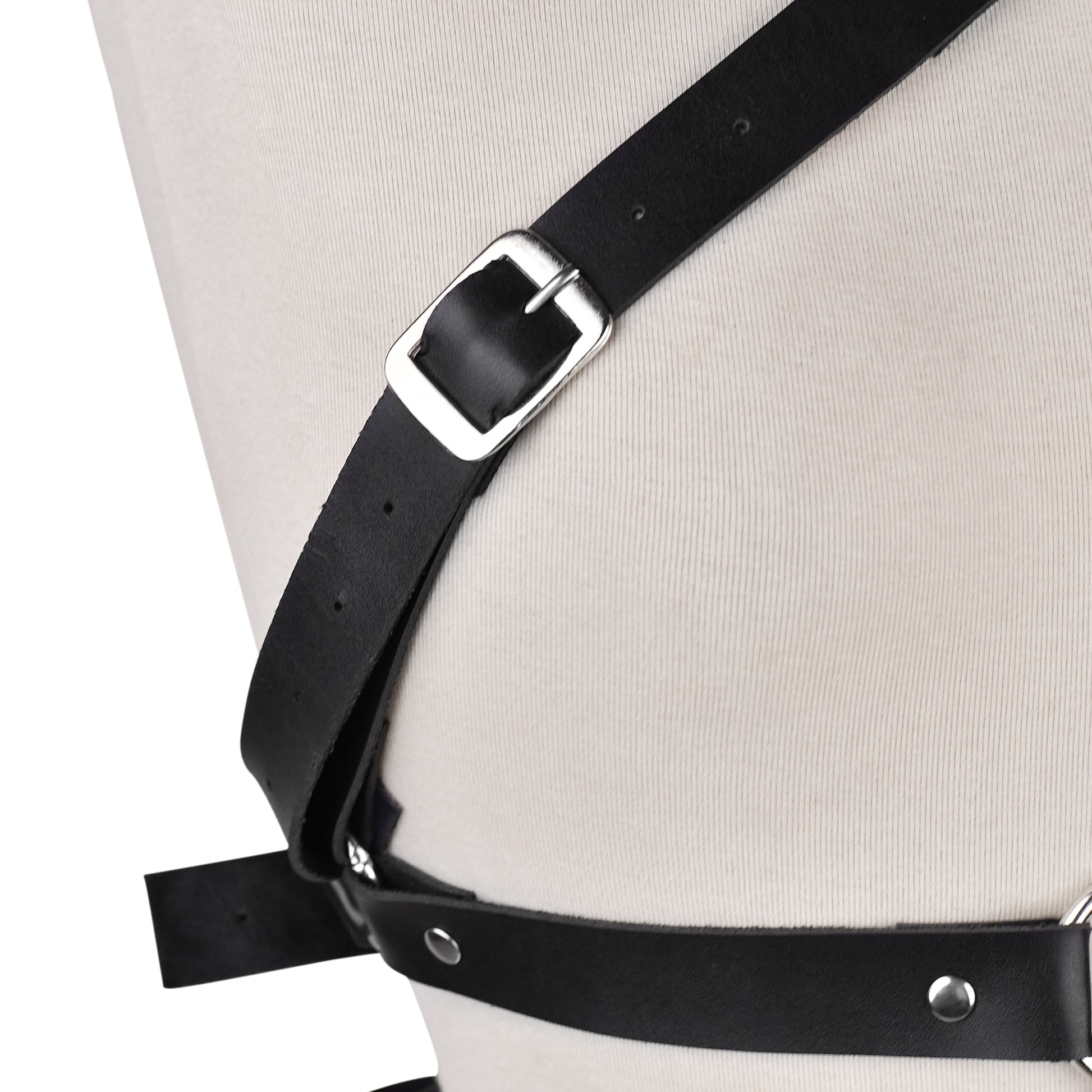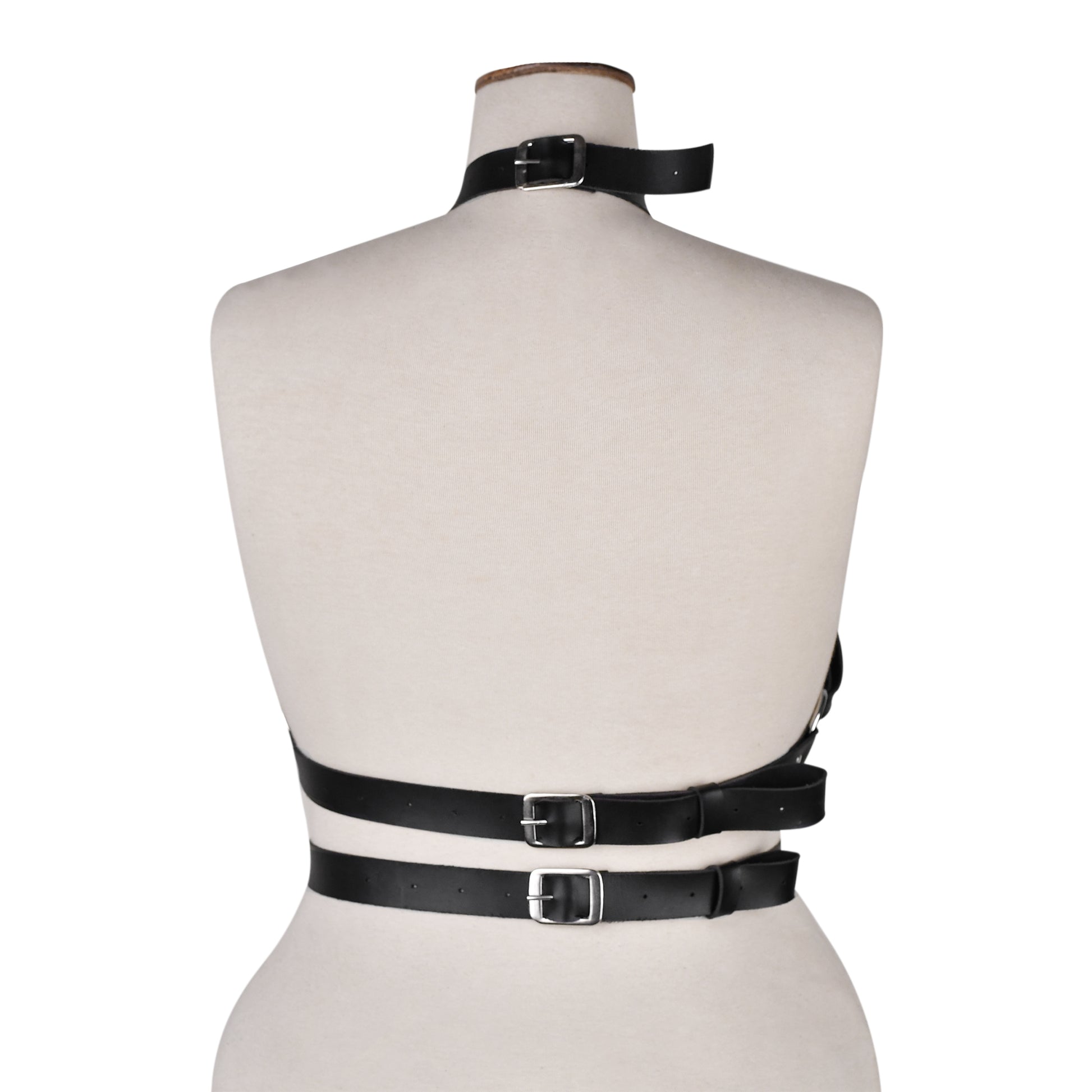 A minimalist black leather harness favored by Dominion guards and sentinels. Built for durability and restraint, its clean lines echo the unyielding order of the Empire.