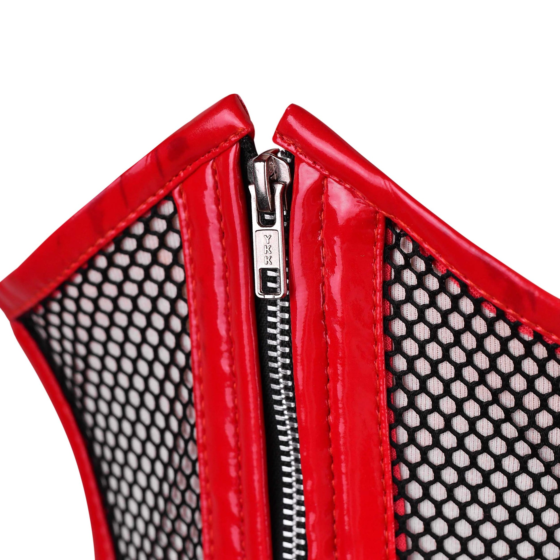 Red Mesh & Leather Corset Top Detailing: