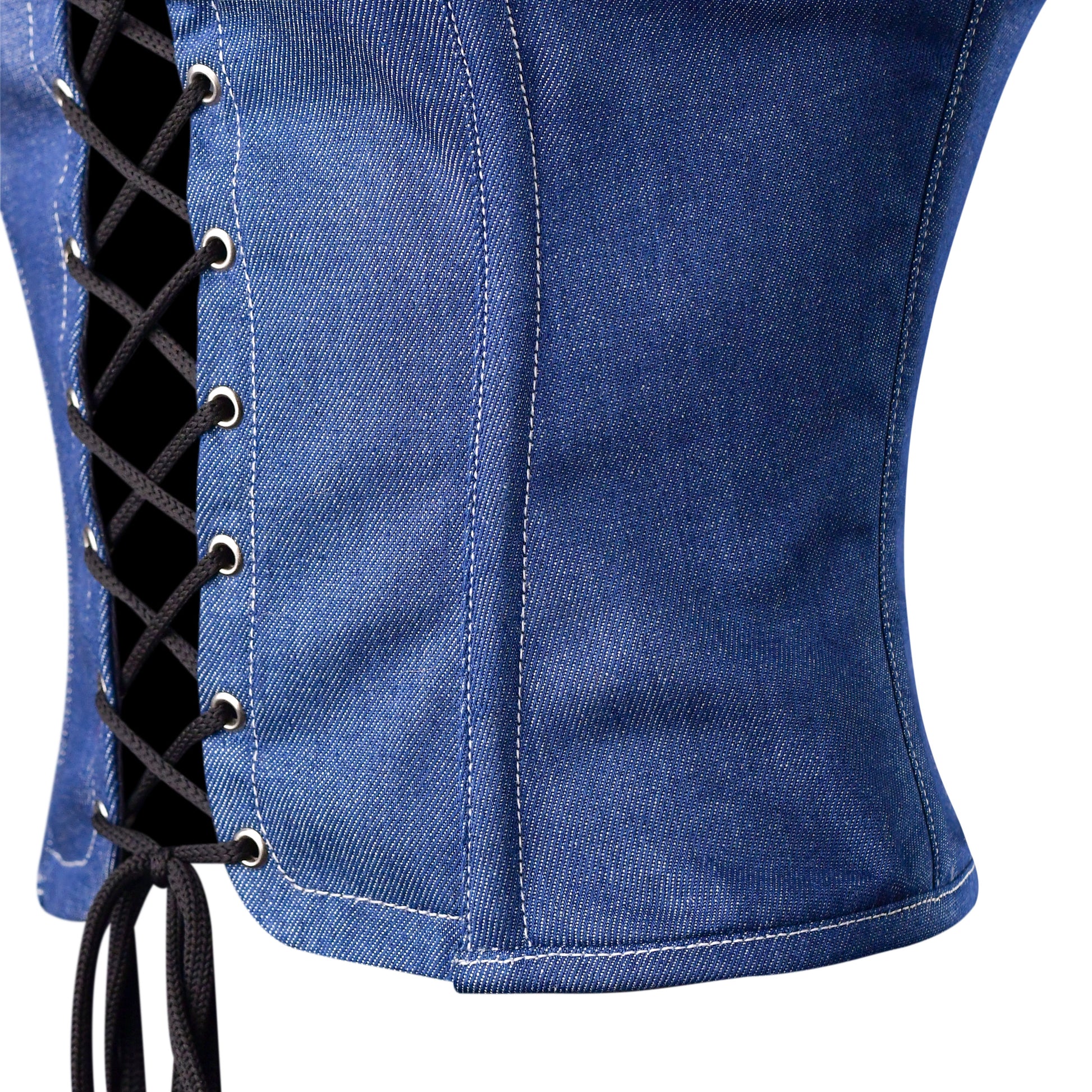 A fresh take on corsetry, this piece blends the structured allure of traditional lacing with the laid-back coolness of denim. The squared neckline and shoulder straps make it perfect for layering or wearing solo as a bold statement piece.
