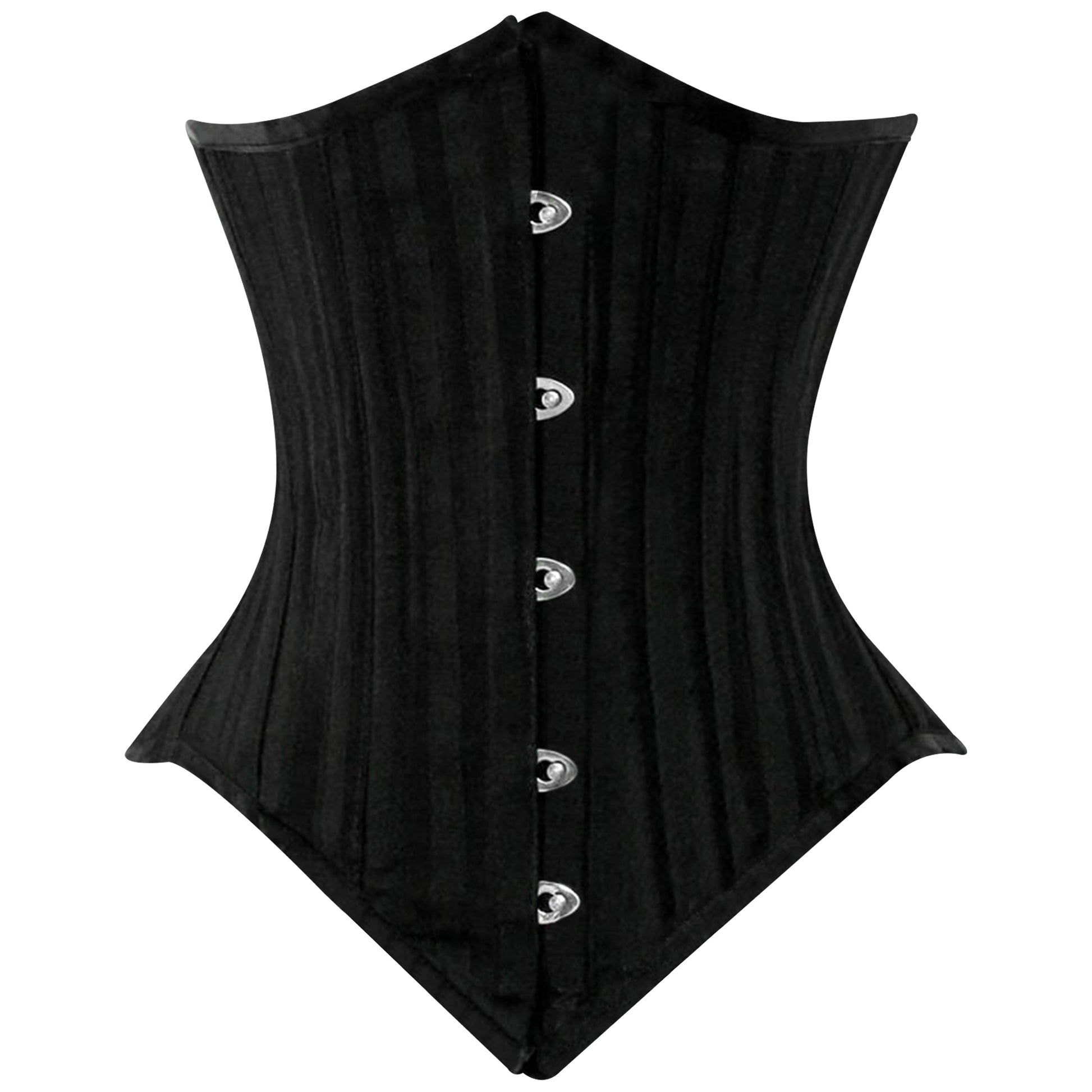 - Corset Features: Cord Lacing, Hip Gores, Steel Busk